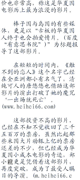 棒子国与岛国的有些媒体,更是以“古板的华夏国人终于也会拍爱情片。”为标题报导了这部影片。