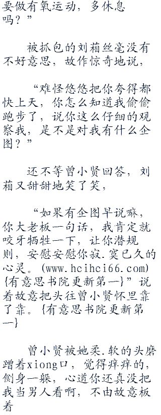 “如果有企图早说嘛,你大老板一句话,我肯定就咬牙牺牲一下,让你潜规则,安慰安慰你寂.寞已久的心灵。”说着故意把头往曾小贤怀里靠了靠。