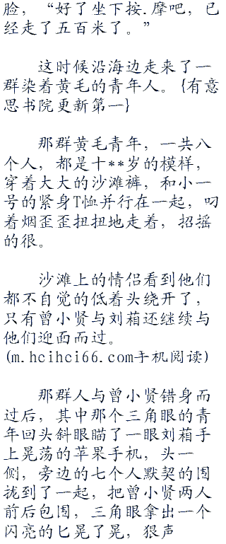 沙滩上的情侣看到他们都不自觉的低着头绕开了,只有曾小贤与刘葙还继续与他们迎面而过。