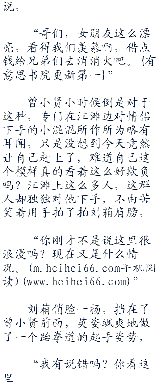 曾小贤小时候倒是对于这种,专门在江滩边对情侣下手的小混混所作所为略有耳闻,只是没想到今天竟然让自己赶上了,难道自己这个模样真的看着这么好欺负吗?江滩上这么多人,这群人却独独对他下手,不由苦笑着用手拍了拍刘葙肩膀,