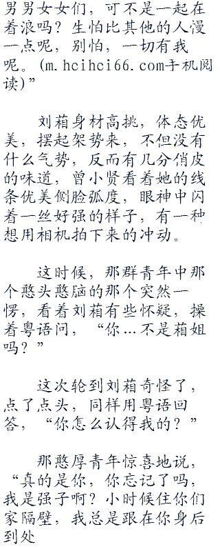 这时候,那群青年中那个憨头憨脑的那个突然一愣,看着刘葙有些怀疑,操着粤语问,“你…不是葙姐吗?”