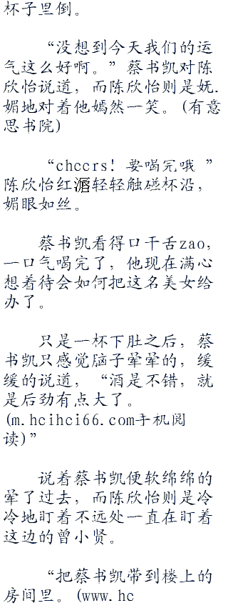 蔡书凯看得口干舌zao,一口气喝完了,他现在满心想着待会如何把这名美女给办了。