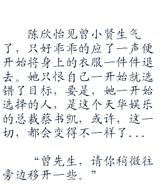 接下来的一幕,自然是指曾小贤派陈欣怡去色.诱蔡书凯。