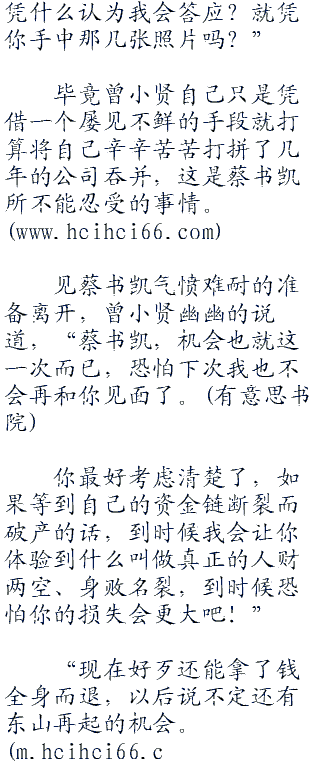 “不管是阿里巴巴,还是紫音公司,曾小贤都凭什么认为我会答应?就凭你手中那几张照片吗?”