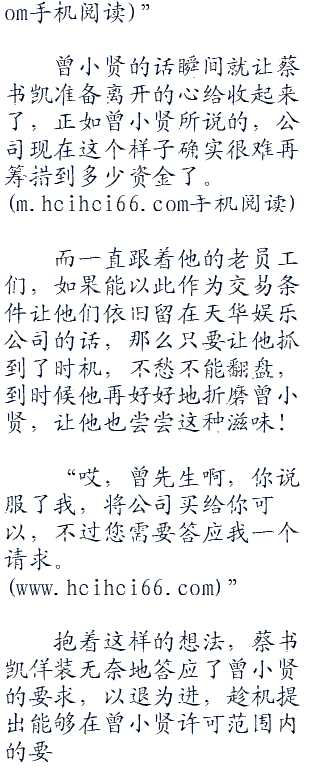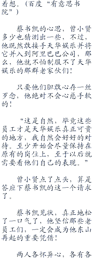 若不是曾小贤恰好捕捉到蔡书凯眼中一闪而逝的阴霾,恐怕他真的会信以为真,会当蔡书凯有多么的为他的员工着想。