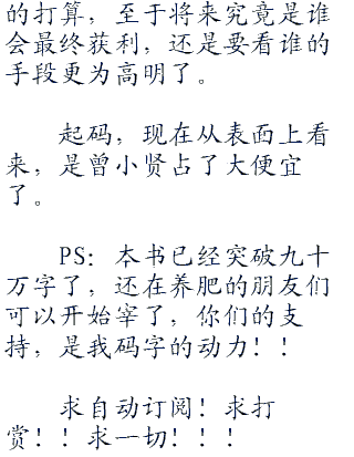 PS:本书已经突破九十万字了,还在养肥的朋友们可以开始宰了,你们的支持,是我码字的动力!!