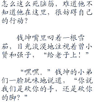 曾小贤性格本来就是个吃软不吃硬的人,听到这个钱坤下手如此狠辣,心里不由有些不屑他的为人。
