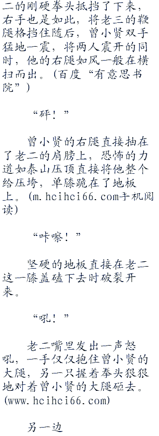 老二嘴里发出一声怒吼,一手仅仅抱住曾小贤的大腿,另一只握着拳头狠狠地对着曾小贤的大腿砸去。
