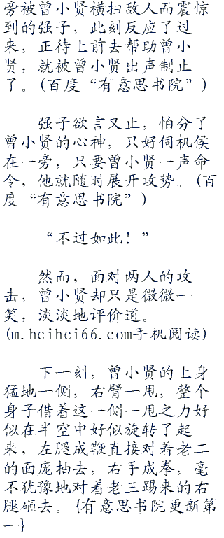 “那就要看你们有没有这个本事了。看 ┐毛 ┐线 ┐小 ┐说”一股气势从曾小贤的身体中扩散而出,“甭废话了,你们一起上吧!哥最近正好手痒呢。”