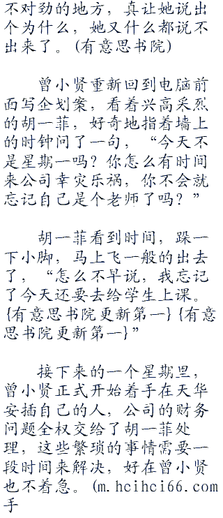 曾小贤重新回到电脑前面写企划案,看着兴高采烈的胡一菲,好奇地指着墙上的时钟问了一句,“今天不是星期一吗?你怎么有时间来公司幸灾乐祸,你不会就忘记自己是个老师了吗?”