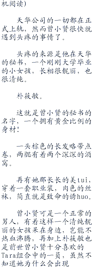 曾小贤可是一个正常的男人,有着这样一个清纯靓丽的女孩呆在身边,岂能不热血沸腾,再加上朴筱敏也是前世曾小贤十分喜欢的T-ara组合中的一员,虽然不知道她为什么会出现在这里,但是每天有这么一个美女在眼前晃,曾小贤可是忍得够辛苦。
