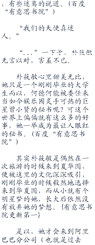 “...”一下子,朴筱敏无言以对,害羞不已。
