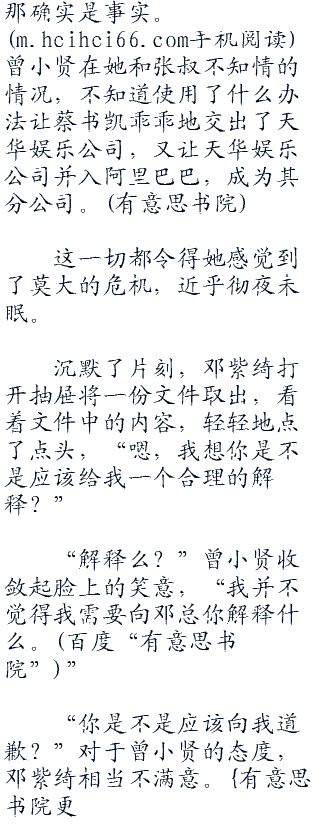 “让我想想啊。”曾小贤毫不忌讳地打量着邓紫绮,随即带着调侃的声音从他的嘴里传出,“难道是因为天华娱乐公司的事情在跟我怄气?”