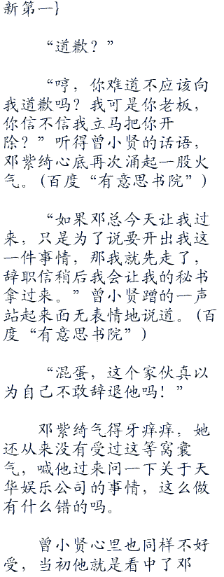 “你是不是应该向我道歉?”对于曾小贤的态度,邓紫绮相当不满意。