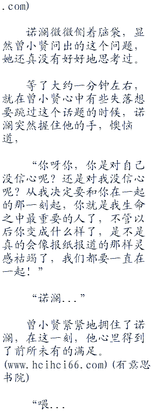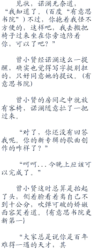 曾小贤问出这个问题的时候,连他自己都有些不确定诺澜的答案了,他心里一紧,丢下笔,紧紧地盯住诺澜。