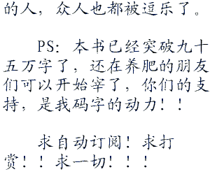 PS:本书已经突破九十五万字了,还在养肥的朋友们可以开始宰了,你们的支持,是我码字的动力!!