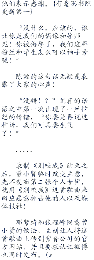 “没什么,应该的,谁让你是我们的偶像和导师呢!你被侮辱了,我们这群粉丝和学生怎么可以袖手旁观!”