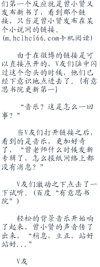 当V友们打开链接之后,看到的是音乐,更加好奇了,“曾老师什么时候发新专辑了,怎么报纸网络上都没有消息?”