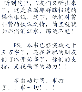 PS:本书已经突破九十五万字了,还在养肥的朋友们可以开始宰了,你们的支持,是我码字的动力!!