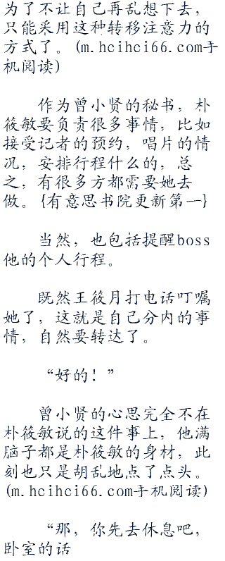 朴筱敏心里娇羞不已,大脑里更是胡思乱想,为了不让自己再乱想下去,只能采用这种转移注意力的方式了。