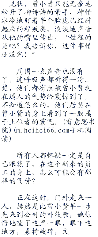 周围一点声音也没有了,连呼吸声都听得一清二楚,他们都有点被曾小贤现在逼人的气势给震惊到了,不知道怎么的,他们居然在曾小贤的身上看到了一股属于上位者的霸气。