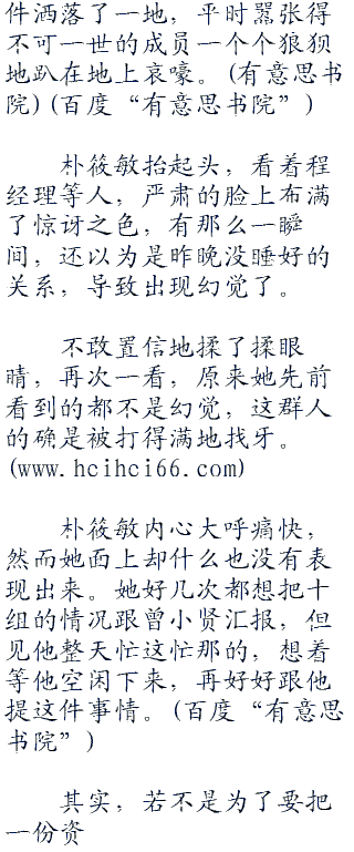 正在这时,门外走来一人,赫然是比曾小贤早一步先来到公司的朴筱敏,她惊愕地望了这里一眼,眼下这地方,桌椅破碎,文件洒落了一地,平时嚣张得不可一世的成员一个个狼狈地趴在地上哀嚎。
