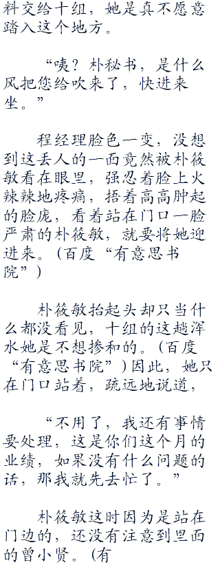 朴筱敏抬起头却只当什么都没看见,十组的这趟浑水她是不想掺和的。因此,她只在门口站着,疏远地说道,