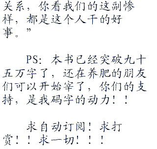 PS:本书已经突破九十五万字了,还在养肥的朋友们可以开始宰了,你们的支持,是我码字的动力!!