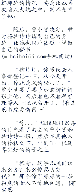 “柳诗诗,你跟我去人事部登记一下,从今天开始,你就是我的秘书了。”曾小贤罢了罢手示意柳诗诗跟上他,而后看也不看程经理等人一眼就离开了。