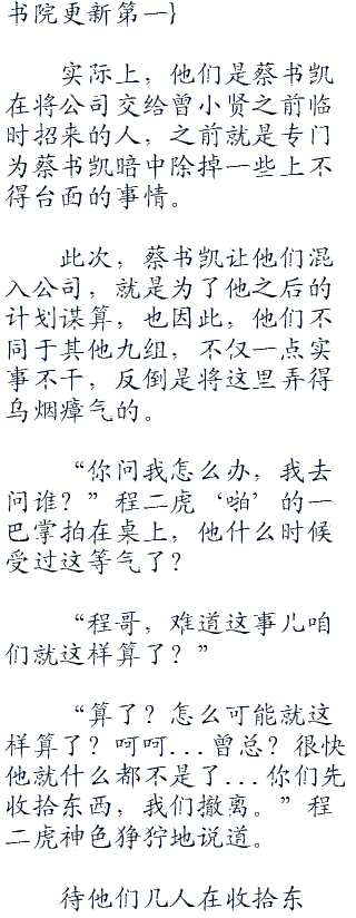 实际上,他们是蔡书凯在将公司交给曾小贤之前临时招来的人,之前就是专门为蔡书凯暗中除掉一些上不得台面的事情。