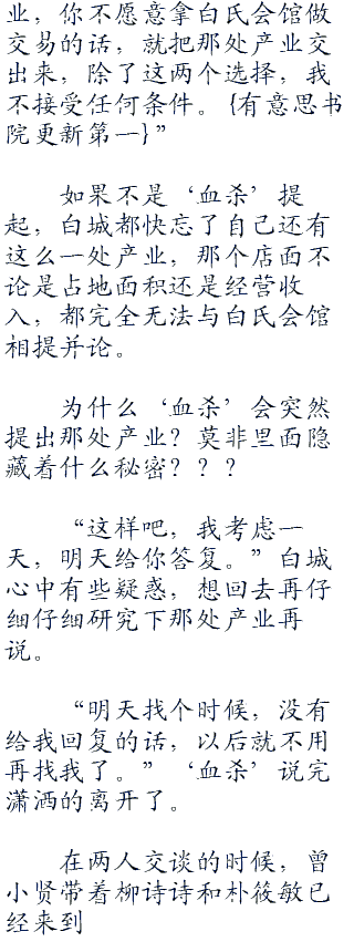 为什么‘血杀’会突然提出那处产业?莫非里面隐藏着什么秘密???