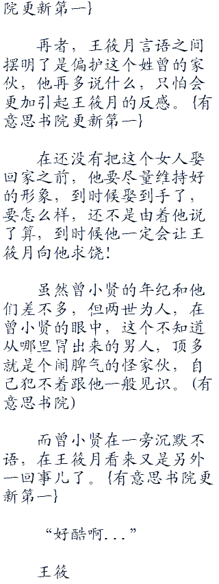 而曾小贤在一旁沉默不语,在王筱月看来又是另外一回事儿了。
