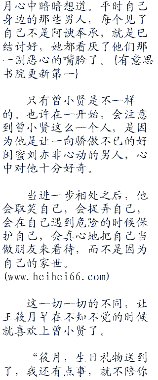 这一切一切的不同,让王筱月早在不知不觉的时候就喜欢上曾小贤了。