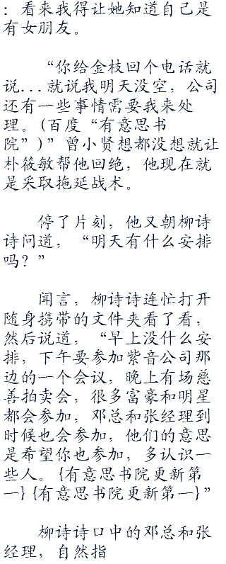 “你给金枝回个电话就说...就说我明天没空,公司还有一些事情需要我来处理。”曾小贤想都没想就让朴筱敏帮他回绝,他现在就是采取拖延战术。
