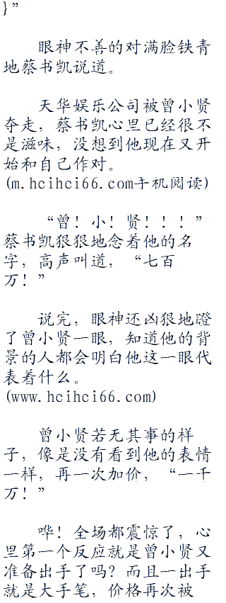 哗!全场都震惊了,心里第一个反应就是曾小贤又准备出手了吗?而且一出手就是大手笔,价格再次被他顶上天了。