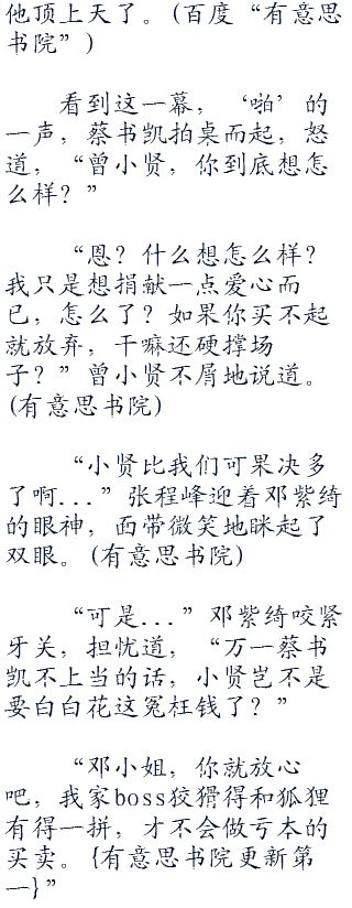 天华娱乐公司被曾小贤夺走,蔡书凯心里已经很不是滋味,没想到他现在又开始和自己作对。