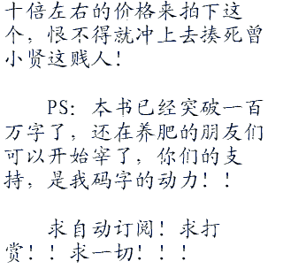 PS:本书已经突破一百万字了,还在养肥的朋友们可以开始宰了,你们的支持,是我码字的动力!!