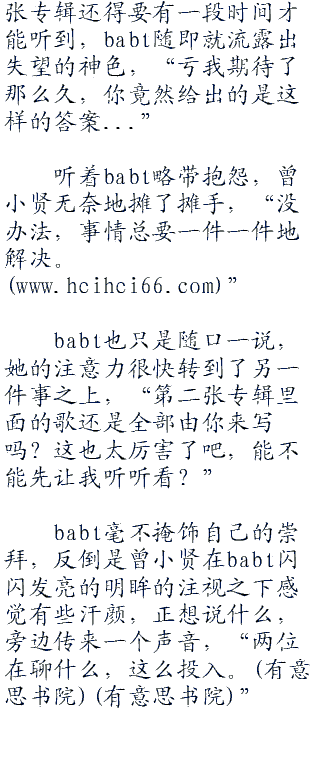 “诶!希望吧。对了,你什么时候出第二张专辑,报纸上说你已经开始在筹备第二张专辑了,是真的吗?”