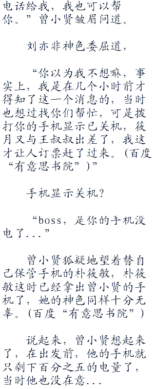 说起来,曾小贤想起来了,在出发前,他的手机就只剩下百分之五的电量了,当时他也没在意...