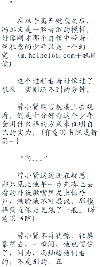 在双手离开键盘之后,冯灿又是一脸青涩的模样,好像刚才那个自信中带着一丝狂意的少年只是一个幻觉。