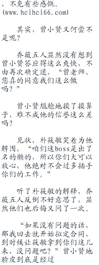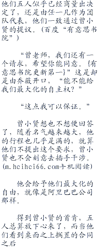 得到曾小贤的首肯,五人总算放下心来了,而当他们看到桌面之上搁置的合同之后,不免有些感慨。