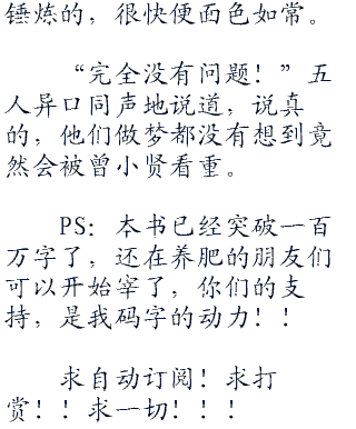 PS:本书已经突破一百万字了,还在养肥的朋友们可以开始宰了,你们的支持,是我码字的动力!!