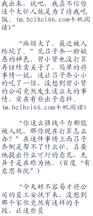 见曾小贤突然没音了,吕子乔反倒有些诧异,“不会吧,还真是让我猜中了啊,我就说,你找我出来绝对没什么好事情,说吧?”