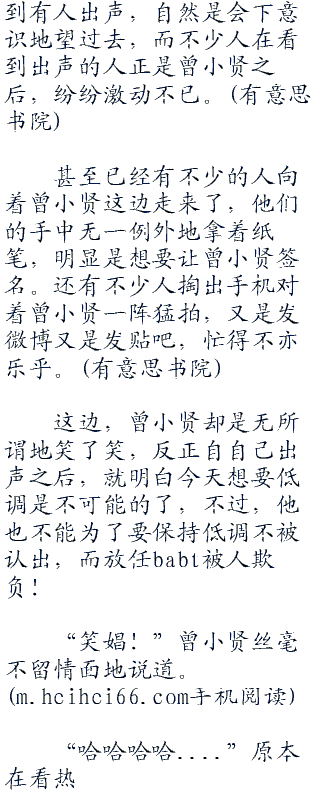 甚至已经有不少的人向着曾小贤这边走来了,他们的手中无一例外地拿着纸笔,明显是想要让曾小贤签名。还有不少人掏出手机对着曾小贤一阵猛拍,又是发微博又是发贴吧,忙得不亦乐乎。