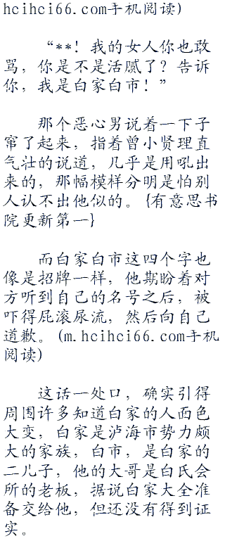 “**!我的女人你也敢骂,你是不是活腻了?告诉你,我是白家白市!”