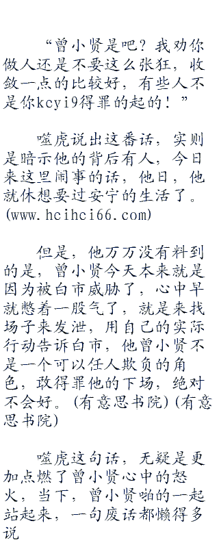 “曾小贤是吧?我劝你做人还是不要这么张狂,收敛一点的比较好,有些人不是你keyi9得罪的起的!”