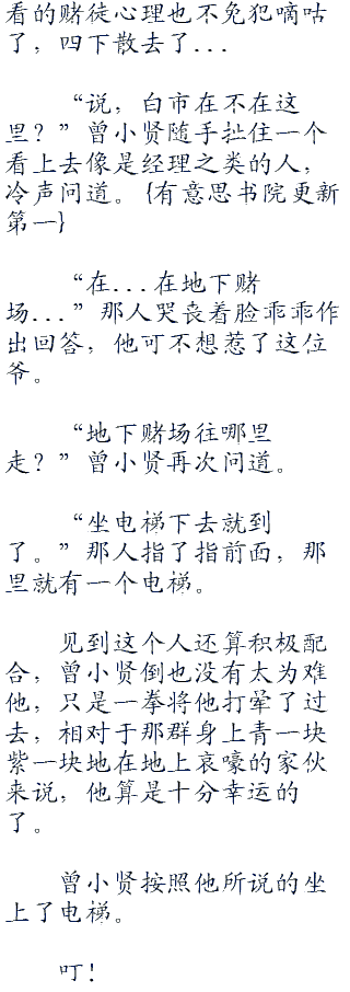 电梯门打开,喧闹的赌场声音让曾小贤下意识的眉头一皱。