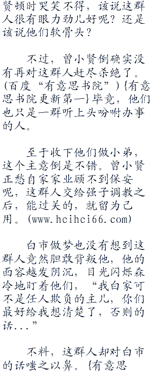 至于收下他们做小弟,这个主意倒是不错。曾小贤正愁自家家业顾不到保安呢,这群人交给强子调教之后,能过关的,就留为己用。