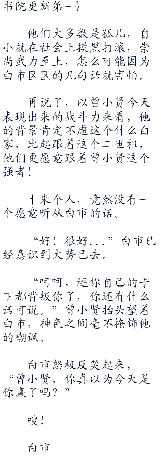 白市怒极反笑起来,“曾小贤,你真以为今天是你赢了吗?”