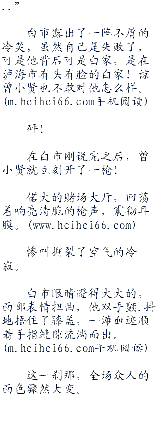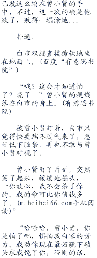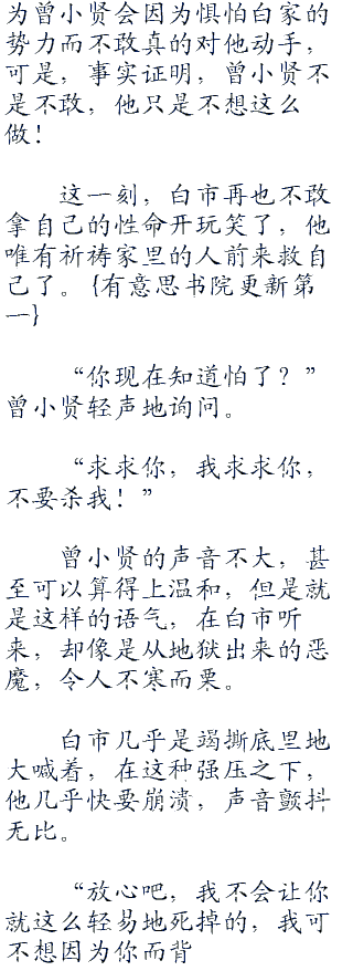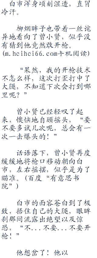 曾小贤的声音不大,甚至可以算得上温和,但是就是这样的语气,在白市听来,却像是从地狱出来的恶魔,令人不寒而栗。